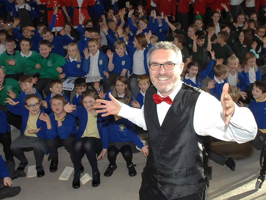 The project had been extremely successful in December 2016 and 2017 and Andrew Roberts, of Winzer Music, had been approached to lead the project again. He had lots of experience of organising these events before and had many new ideas about how to involve over 250 children and their teachers.